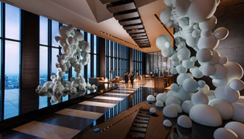 コンラッド大阪では、都心にいながらも自然や宇宙の息吹を五感で感じ、雲を超え、眩い陽の光や星空の煌きを感じられるようなアート作品の数々を館内に散りばめています。アート作品の総数は389点にものぼり、ゲストの感性を刺激するインスピレーション溢れる体験を提供するコンラッドならではの空間が広がります。