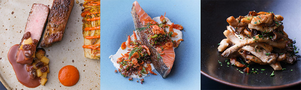 新しいメニューでは生産者のもとへ足を運んで仕入れる新鮮なローカルの食材の実に90%を使用し、フードロスを極限まで減らしたコース料理を薪火焼きグリルでお届けします。また食材は、出来る限り動物や環境に優しい育て方をしている生産者から仕入れたものを使用しています。