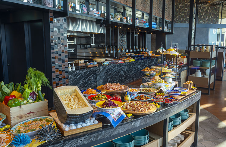 開放感にあふれた空間でパノラマビューをご覧いただけるアトモス・イタリアンダイニング。ランチ&ディナーでは本格的なイタリア料理をご提供。期間限定で「The Elegant Red(ジ・エレガント レッド)」ストロベリースイーツビュッフェも開催中です。