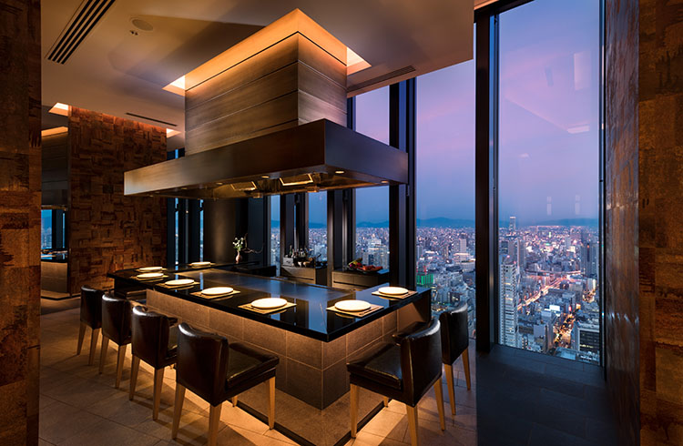 大阪のスカイラインをパノラマビューでお楽しみいただける「蔵」では素材にこだわった鉄板焼料理と、四季折々の食材と職人の繊細な技で調理される寿司をお楽しみいただけます。